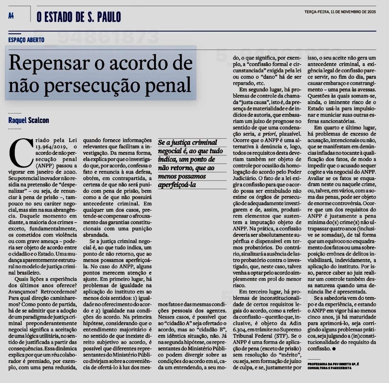 A advogada e professora de direito penal Raquel Scalcon não vê lógica em alterar o tamanho das penas dos crimes em si, no Código Penal, apontando que elas não são altas.